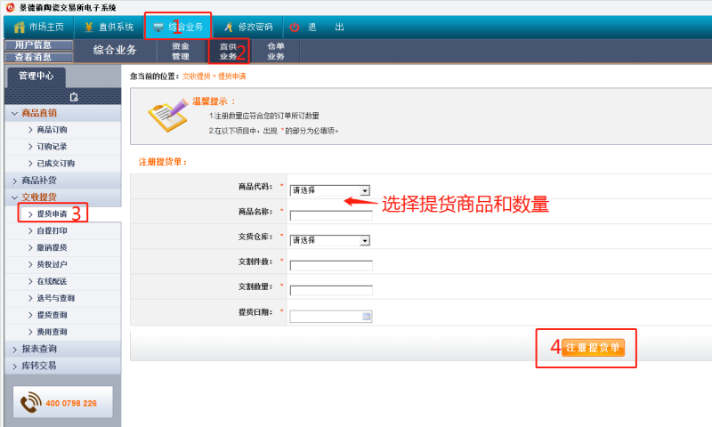 登錄客戶端---綜合業(yè)務(wù)---直供業(yè)務(wù)---提貨申請(qǐng)---注冊(cè)提貨單