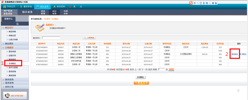 2、在線配送申請(qǐng)