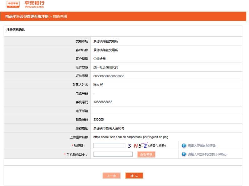 步驟三:點擊下一步進入確認頁面,在有效時間內輸入正確的手機動態(tài)口令,點擊確認提交系統(tǒng),如圖: