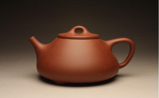 “石瓢”最早稱為“石銚”,“銚”在《辭海》中釋為“吊子,一種有柄,有流的小烹器”?!般摗睆慕饘倨髅笞?yōu)樘掌?,最早見于北宋大學(xué)士蘇軾《試院煎茶》詩:“且學(xué)公家作名欽,磚爐石銚行相隨”。蘇東坡把金屬“銚”改為石“銚”,這與當(dāng)時(shí)的茶道有著密切的關(guān)系。蘇東坡貶官到宜興蜀山教書,發(fā)現(xiàn)當(dāng)?shù)氐淖仙肮拗蟛璞茹~、鐵器皿味道好,于是他就地取材,模仿金屬吊子設(shè)計(jì)了一把既有“流”(壺嘴),又有”梁”(壺提)的砂陶之“銚”用來煮茶,這“銚”也即后人所稱的“東坡提梁”壺,這可謂最早的紫砂“石銚”壺。