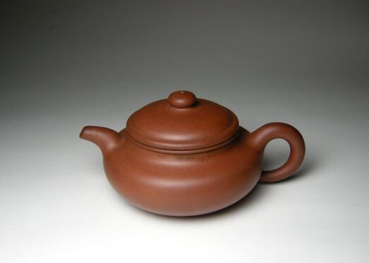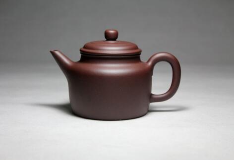 一說清代邵大亨初創(chuàng),原意是壺體仿照鼓型,后人仿制做這種壺形就成了仿古代壺型的意思了。另說最早見于近代趙松亭按吳大徴授意所作,身扁、腹鼓、頸高、蓋板平滑,壺蓋與口沿子母線吻合嚴(yán)密,合成圓線飽滿,扁鈕有力,虹鈕有勢,二彎流胥出自然 ;圓圈把勻勢而起,有些款把圓下有垂,富于靈動(dòng),整體骨肉亭勻,收展有度,有一氣呵成之暢。