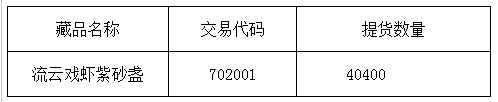 2019001關于交易藏品《流云戲蝦紫砂盞》提貨公告